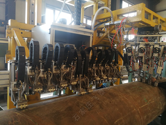 長管拖車用大容積鋼制無縫氣瓶由于長度和體積都較大,如果采用接觸法手工探傷,不僅探傷效率低下,還會因為